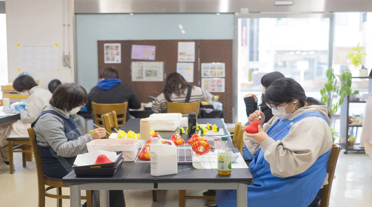 張り子製品の製作に関わる作業 その他、内職、簡単な事務作業、清掃作業もあります。 多機能型のため、B型から始め、A型、就職とステップを踏むことも可能。 例年2~3名の方が就職します 事業所が交差点近くに位置しており、バス通りも多くアクセスし易い