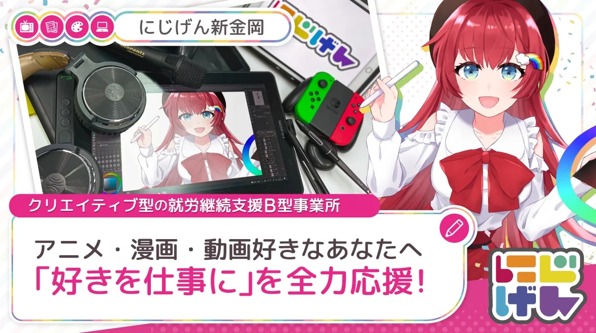 にじげんとは? にじげんではご利用者様の「好き」を「仕事」にするサポートを行っています!まずはあなたの夢を教えてください。 にじげんスタッフがその夢の実現に向け、キャリア相談、機材の準備、学習指導、学習教材の提供等、幅広くサポートします! 既にスキルをお持ちの方も、未経験だけどやってみたい!という方も自分のペースで無理なく楽しみながらチャレンジしてみませんか? にじげんなら週1日からのご利用も可能です! 有名クリエイターと提携♪ にじげんでは、プロの漫画家・イラストレーター・声優による本格講義を無料で受講いただけます! 人気の講義は全事業所一斉オンラインで配信されます。 あなたのお近くの通いやすい施設から、あこがれの講師の授業を受けてみませんか? 無料体験・無料見学も可能です。お電話にてご予約ください。 にじげんでの成長事例 にじげんではイラスト、動画、執筆、PC基礎、WEB制作・・・と幅広い内容を学ぶことが出来ます。 画像はご利用者様の成長過程です! 一番右のイラストを描けるようになるまでにかかった期間はなんと1カ月!驚きの急成長ですね! 1カ月1日1時間ずつ勉強した成果が出てよかったです。 イラスト以外にも様々なコースがあるのでお気軽にご相談ください! お仕事紹介 お仕事は内職や検品、データ入力など多岐に渡ります!また、イラスト制作や動画編集依頼など、スキルに応じてお仕事が増えていくことも! パソコンが好きな人、パソコンをあまり触ったことがない人問わず、様々な作業がありますのでご安心ください♪ スキルマーケットでの販売も可能! ・イラストの依頼受注、販売 ・動画編集の依頼受注 ・ロゴ、パンフレット、名刺の作成 ・データ入力 などなど様々なスキルの習得から収益化までのご相談に乗っています!