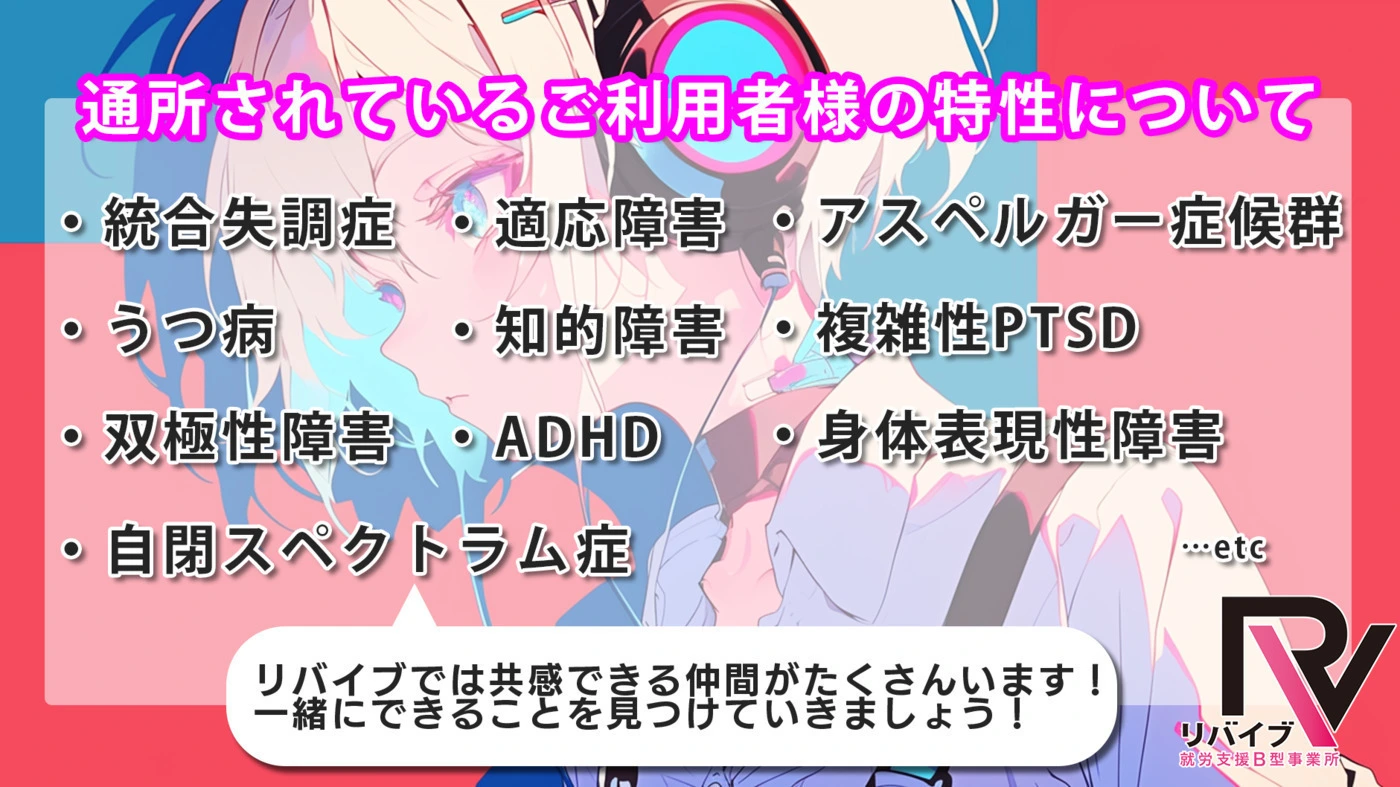 この事業所は就労継続支援B型です。 働くことに障害のある方がサポートを受けながら仕事や日中活動が出来ます。