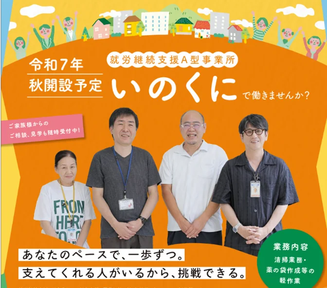 就労継続支援A型事業所いのくにの基本情報 事業所名就労継続支援A型事業所いのくに 電話番号 定員15名 住所福岡県田川市大字猪国2020番地2利用可能な時間月火水木金土日祝−−−−−−−−無料相談・体験予約はこちらから