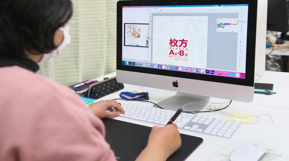 枚方市の光善寺駅から徒歩約5分。PC作業から軽作業まで幅広く対応し、「少しずつできることを増やしたい」という思いを大切にしながら支援を行い、2021年以降6名の一般就労を実現しています。