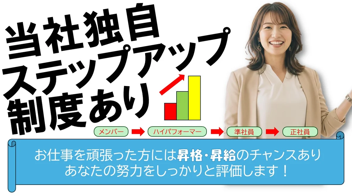 その後、準社員(フルタイム)、正社員登用もあり、上を目指せるステップアップのチャンスが多くあります。