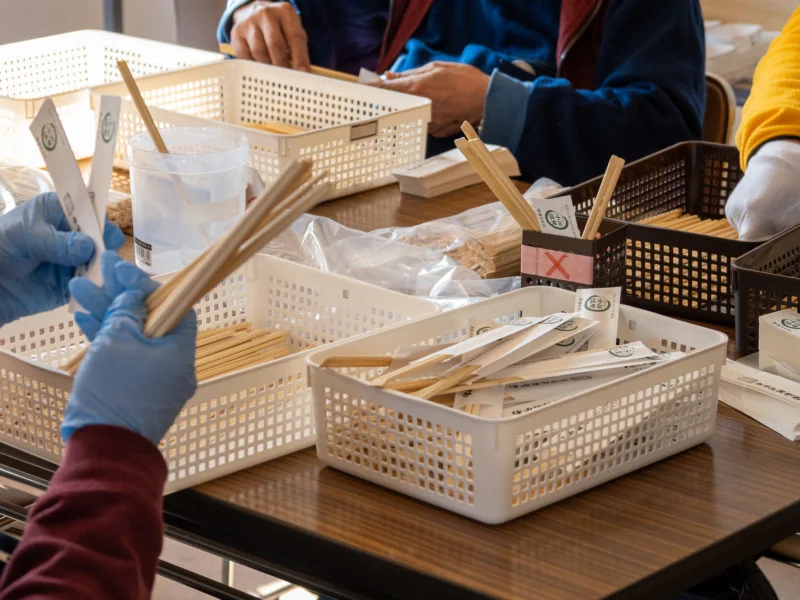 あどないん南では、利用者様一人ひとりが自分のペースで楽しく働くことを大切にしています。日々の作業を通じて「できた」という実感を積み重ね、自信を育みながら、次の就労ステップや充実した生活につなげていけるよう支援しています。 作業内容は、安定して取り組める箸の検品・封入作業をはじめ、物品の検品や梱包、組立、シール貼りなどの内職作業があります。作業によっては立ち仕事や、仲間と協力して進めるものもあり、それぞれの特性に合わせて無理なく取り組むことができます。 また、胡椒製品の製造では、カンボジアから輸入した生胡椒や乾燥胡椒を商品化しています。熱処理や計量、検品、封入、ラベル貼りなど、食品に関わる工程を経験できるのも特徴です。清潔な作業環境の中で、身だしなみを整えながら、丁寧に作業を行います。 安心して働ける環境の中で、自分らしくステップアップしていける場所です。
