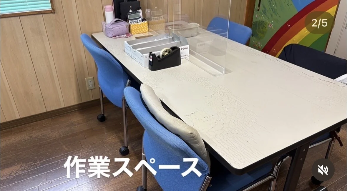 ・40~60代の利用者さん9名の少人数でゆっくり落ち着いた雰囲気です ・安定したお仕事があるため、令和6年度月額平均工賃17,404円 (年3回のボーナス含む)達成しています ・袋詰めの簡単な作業で自分のペースで作業に取り組めます ・無料送迎あり(東大阪内可・八尾市一部相談可) ・美味しい手作り給食あり(1食270円)