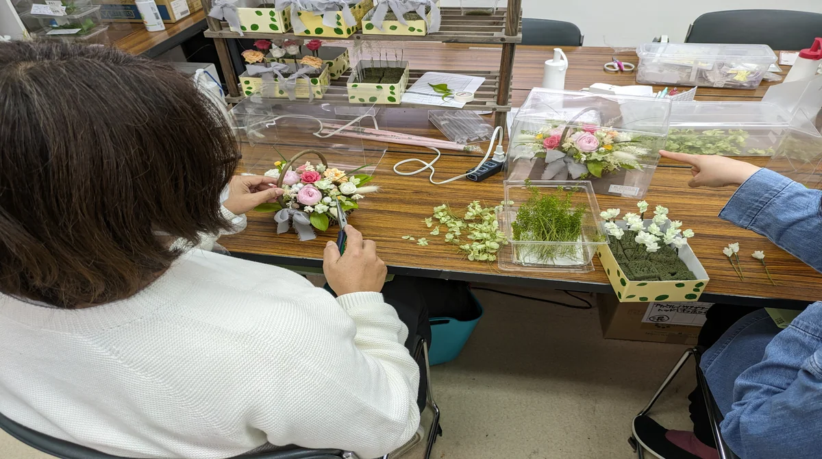 全国でも珍しいプリザーブドフラワーアレンジに特化した事業所での活動を通じて、達成感・充実感を持って訓練を行うことができます。当事業所で制作した商品はふるさと納税の返礼品や有名百貨店のカタログ、生花店にて取り扱いがあり、全国の皆様にお届けしております。 細かく繊細な作業にやりがいを感じる方、落ち着いた環境で黙々と作業に取り組みたい方に向く環境となっております。 制作に必要な道具の使用方法から丁寧に指導を行いますので、初心者の方でも安心してお問い合わせいただければと思います。