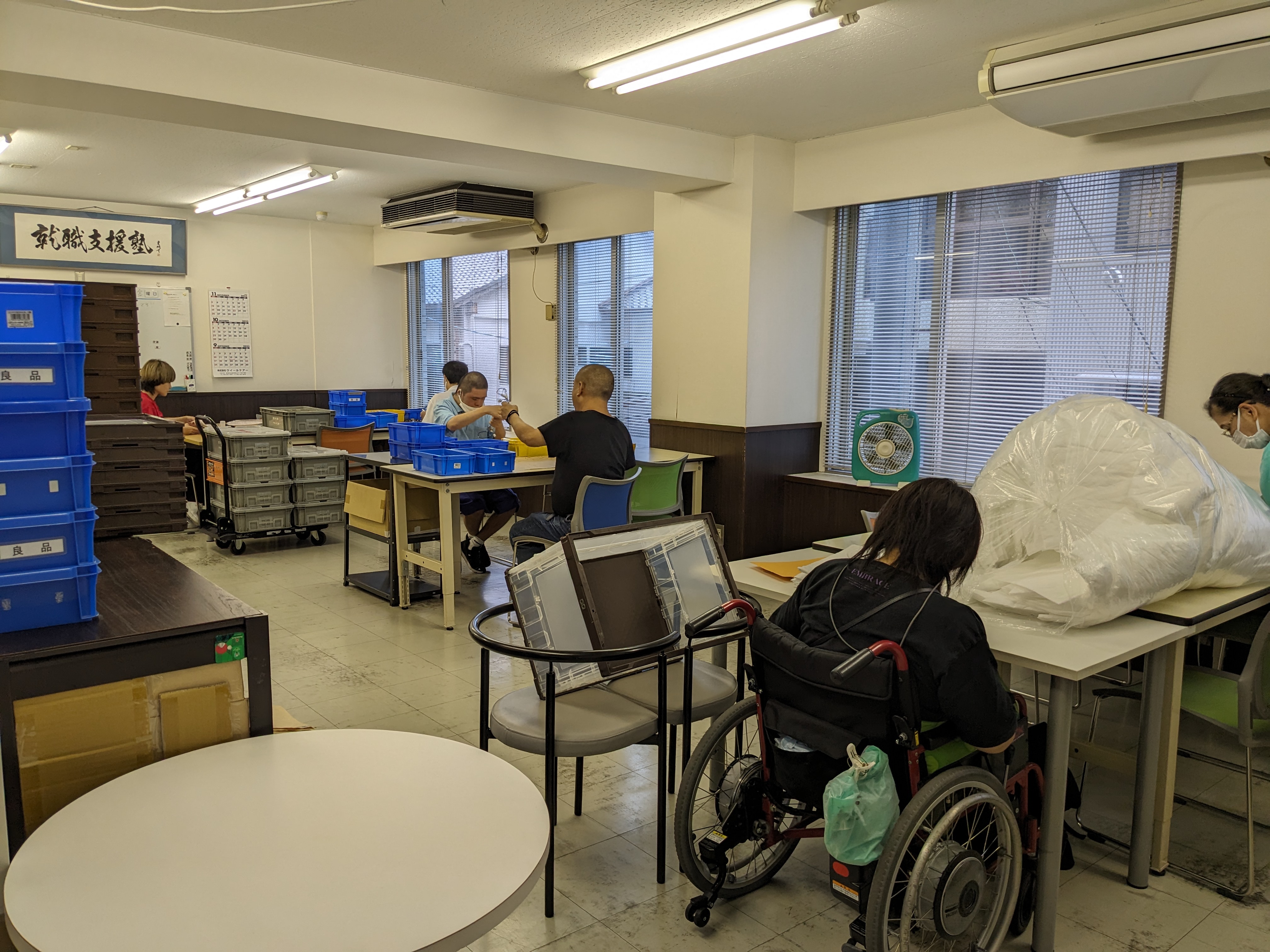 静かでゆったりとした空間の中、個々に合わせた時間帯(週1日1時間でもOK)で軽作業を行っていただいています。聴覚過敏の方や自分のペースを大切にしたい方、車いすの方にも対応しています。