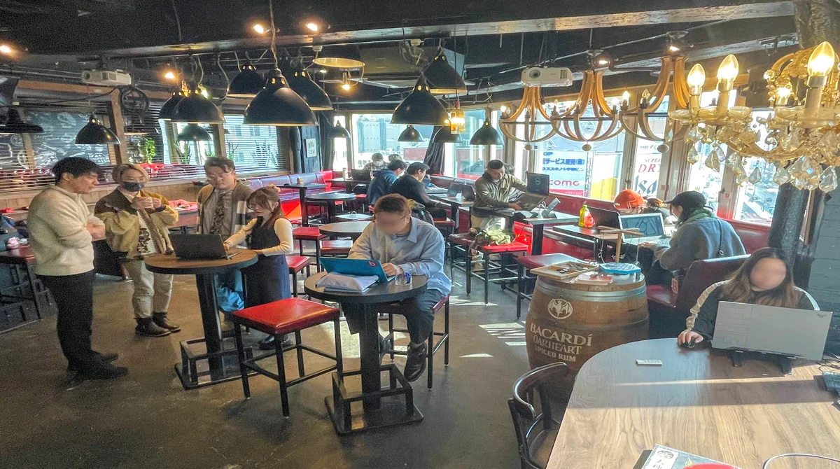 Wi-Fi・大型モニター完備で、BGMが流れる落ち着いた空間だから、クリエイティブ作業に集中しやすく、自然とコミュニケーションも生まれます。