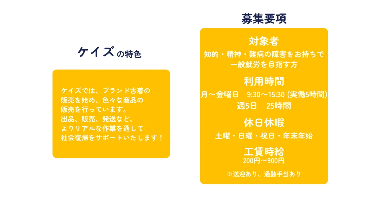 私たちは一人ひとりの個性を大切にしながら、安心して働ける環境を提供しています😊 ・納期に追われず、マイペースに。 自社作業なので納期がなく、焦らずじっくり取り組みたい方にぴったりです🤲 ・努力が形になる、出来高制。 工賃は出来高制なので、あなたの頑張りが成果に繋がります😄 やりがいを感じながら働ける環境です✨ あなたの可能性を信じ成長を全力でサポートします!! お気軽に見学、お問い合わせ下さい🙇♂️