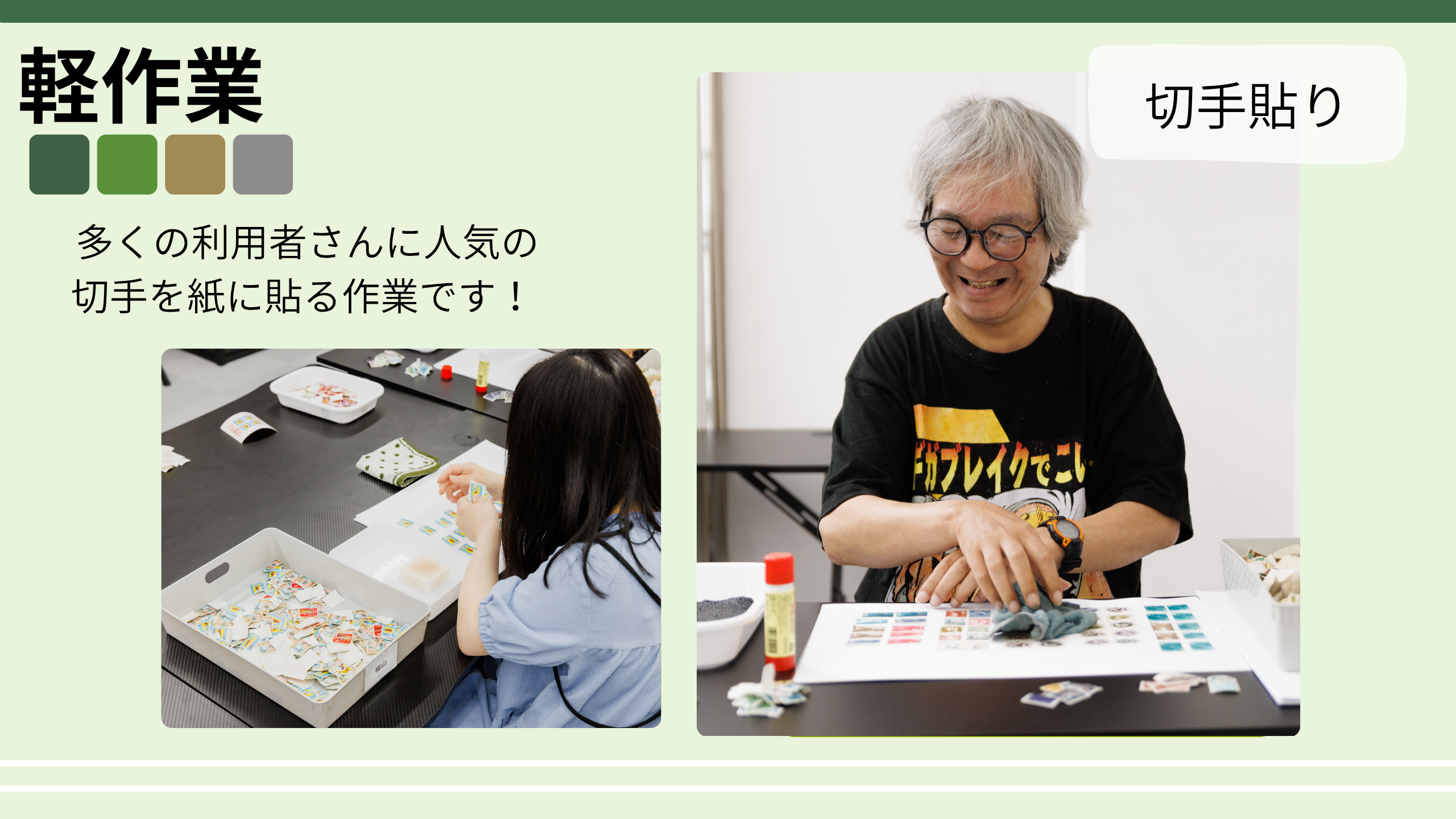 イオンサポート堺筋本町は、就労継続支援A型・B型を通じて多彩な軽作業やポスティング・民泊清掃などの実践的プログラムを提供し、利用者一人ひとりの就職・自立を支援しています。