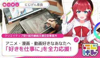 御所駅徒歩1分。音楽制作・動画編集・内職など“やりたいこと”を活かした作業でスキルを磨き、就職をサポートするB型事業所です。送迎や昼食提供などの支援体制も充実し、在宅での作業にも対応しています。