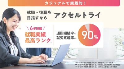 自己理解ができる⇒本当にマッチする職場を見つけられるのはジョブサ!対人技能×ストレスケア×実践的スキル=安定就労で、直近職場定着率100%!PC初心者OK・プログラミングやデザイン系も!在宅訓練あり