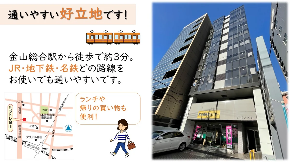 ミラトレ金山は名古屋市中区に位置し、金山駅から徒歩4分の便利な立地にあります。多様な障害を持つ利用者に対応した個別のプログラムを展開し、長期的な就労を目指す支援を強化しています。