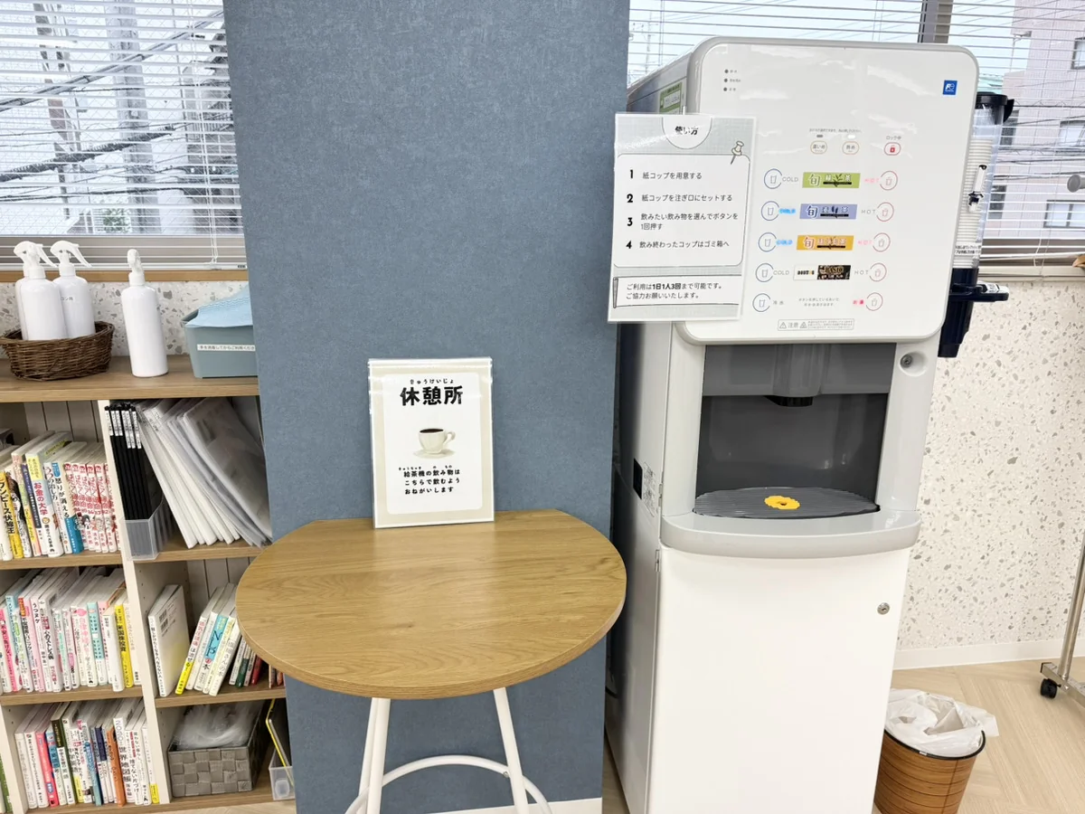 自立訓練事業所リンクス川越では訓練の合間に利用者様がリラックスできるよう、給茶機の用意をしています。人気メニューはコーヒーです☕✨️