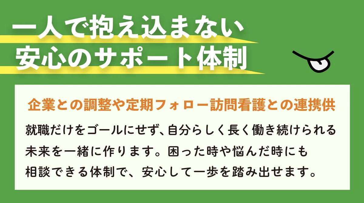 ひとりひとりの希望や状態に合わせて、就職に向けた支援計画を立てることができます。
