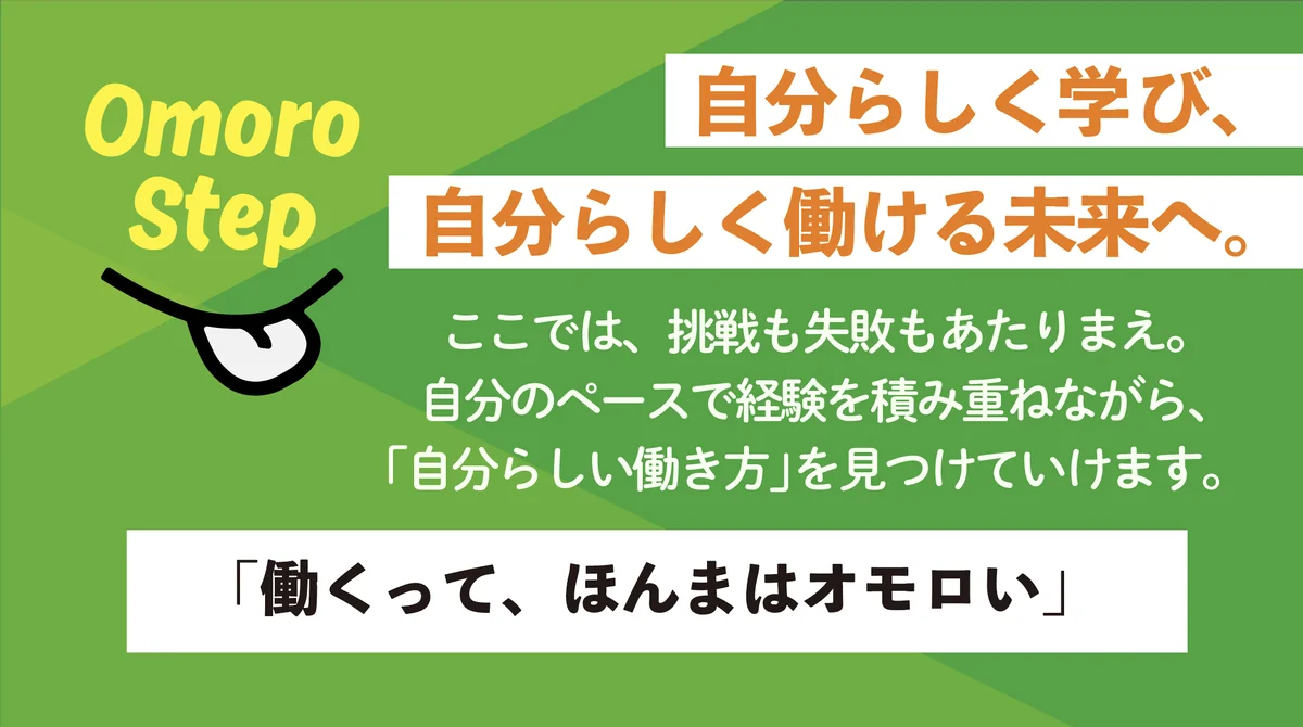 自分らしい働き方を靱公園で見つける。報告・連絡・相談やチームワークなど、職場で通用する力を実際に体験。「働いてみたい」を実感し、自信を育てます。 「働くって、ほんまはオモロい。」 自分らしい働き方をここから。 Omoro-Stepは、働くことに不安やしんどさを感じてきた人が、 もう一度「自分らしく働く」ことに前向きになれる場所です。 就職だけでなく、在宅ワークや起業など、 一人ひとりの「好き」や「得意」、大切にしたいペースに寄り添いながら、 安心して続けられる働き方を一緒に見つけます。 「働くって、ほんまはオモロい。」 その想いを、すべての人へ。