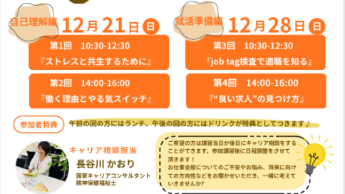 ✨12月無料冬季講習開催✨就職お役立ちイベント❗❗参加特典でランチドリンクあり🎁詳細は活動内容へ