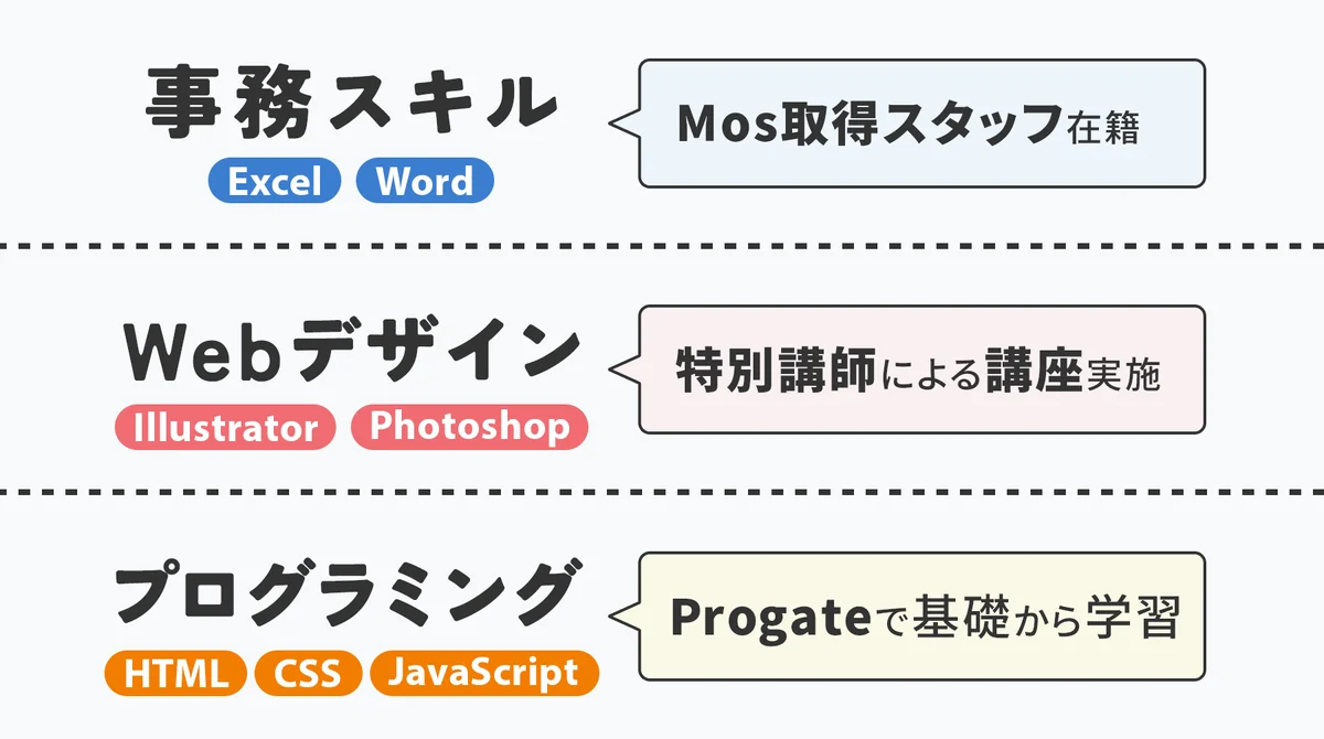 →事務スキル/タイピング/Webデザイン/プログラミング
