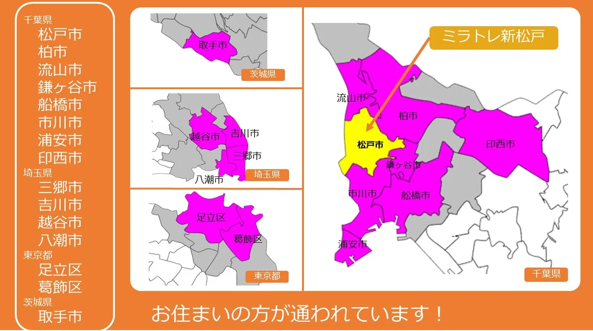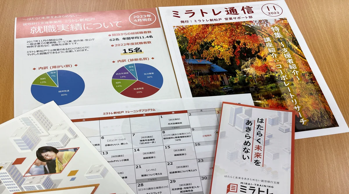 ミラトレ新松戸は松戸市にあり、新松戸駅から徒歩1分です。障害者のための就労支援施設で、個別対応の職業訓練と生活スキル向上のためのプログラムを提供しています。