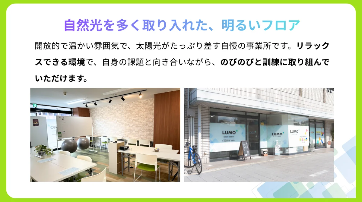 就労移行支援事業所 LUMO+ 阿倍野の特徴