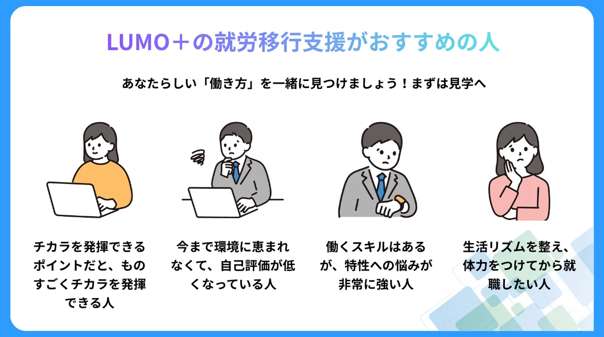 就労移行支援事業所 LUMO+ 阿倍野にはどんな人が通っている?