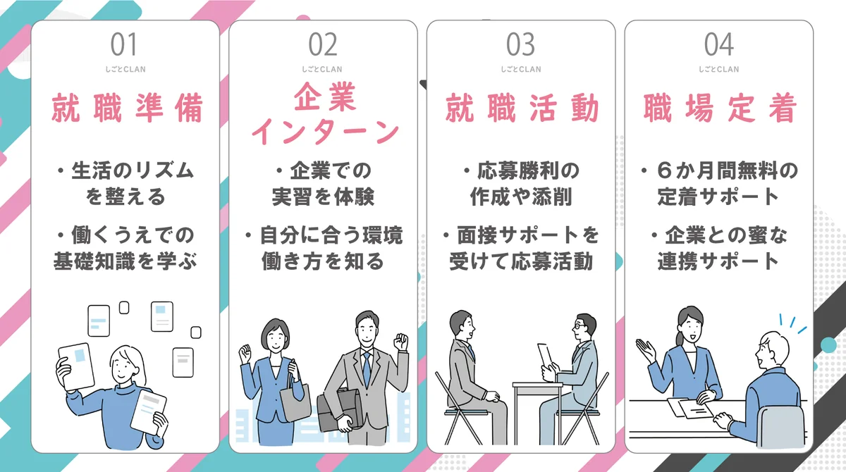 ひとりひとりの希望や状態に合わせて、就職に向けた支援計画を立てることができます。