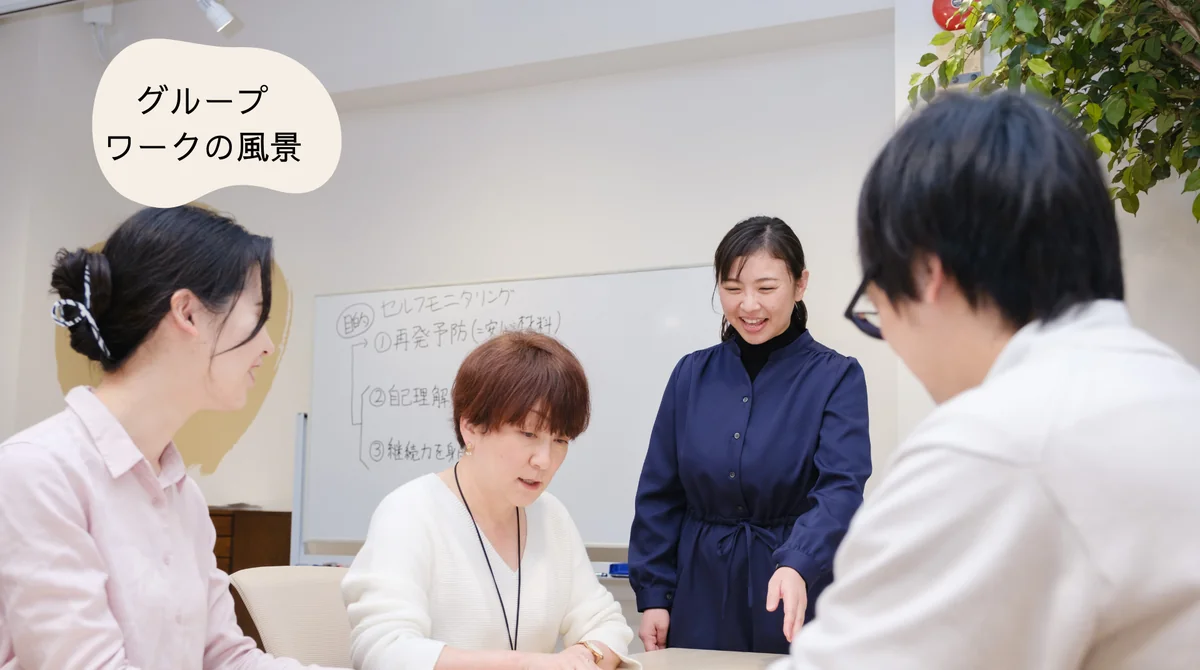 スタッフが一方的に教えるのではなく、グループワークを通じて利用者様同士が気づき合うことを重視しています。