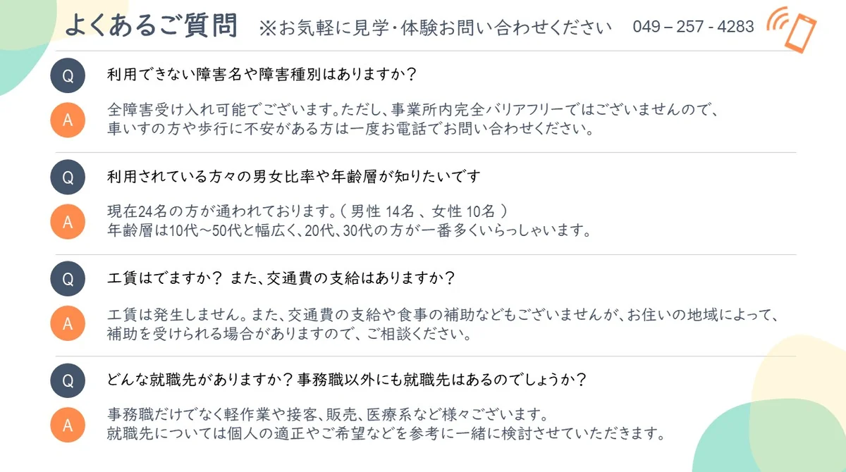 川越駅から徒歩2分!専門資格をもった支援員がサポートします