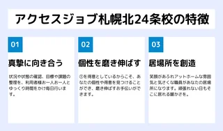 札幌駅すぐ。心の状態を整えながら、自分の特性を知り対処法を一緒に学びます。安心して無理なく、少しでも楽しく、長く安定して働き続けられるよう丁寧にサポートします寄り添いながら一歩ずつ応援します♪